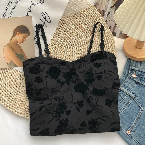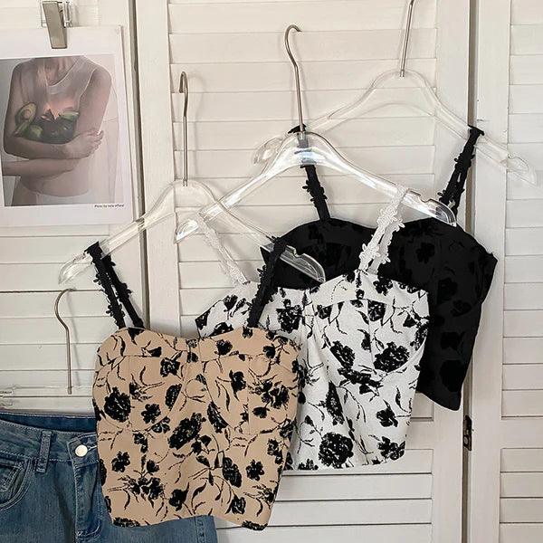New Bridal Soft Padded Floral Printed Spaghetti Top For Girls