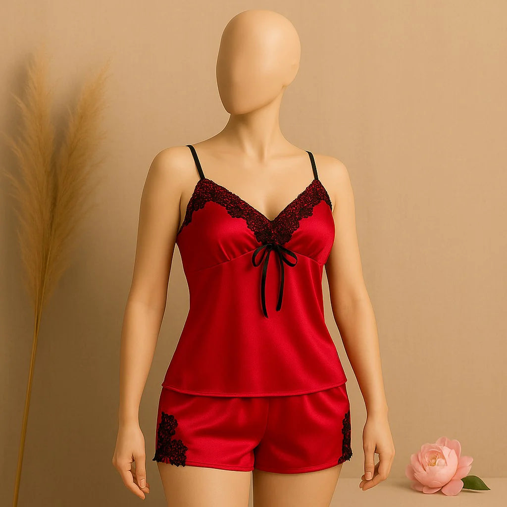 2 pcs silk Charming Style Short Non Padded Inner and Short Nighty